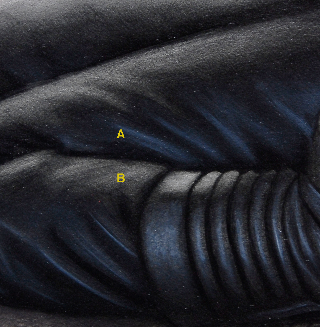 The area marked 'A' is Ivory black mixed with Titanium White.